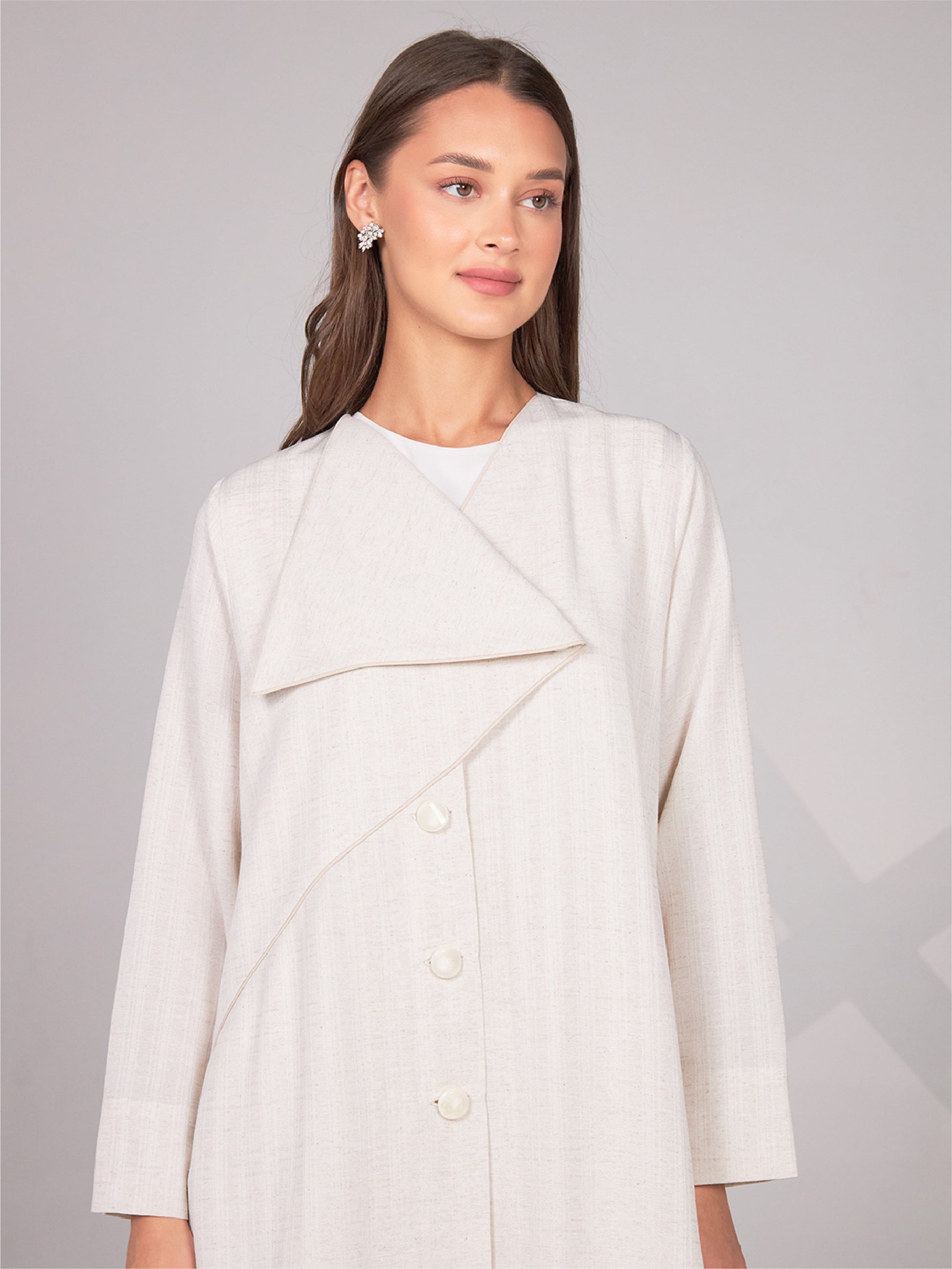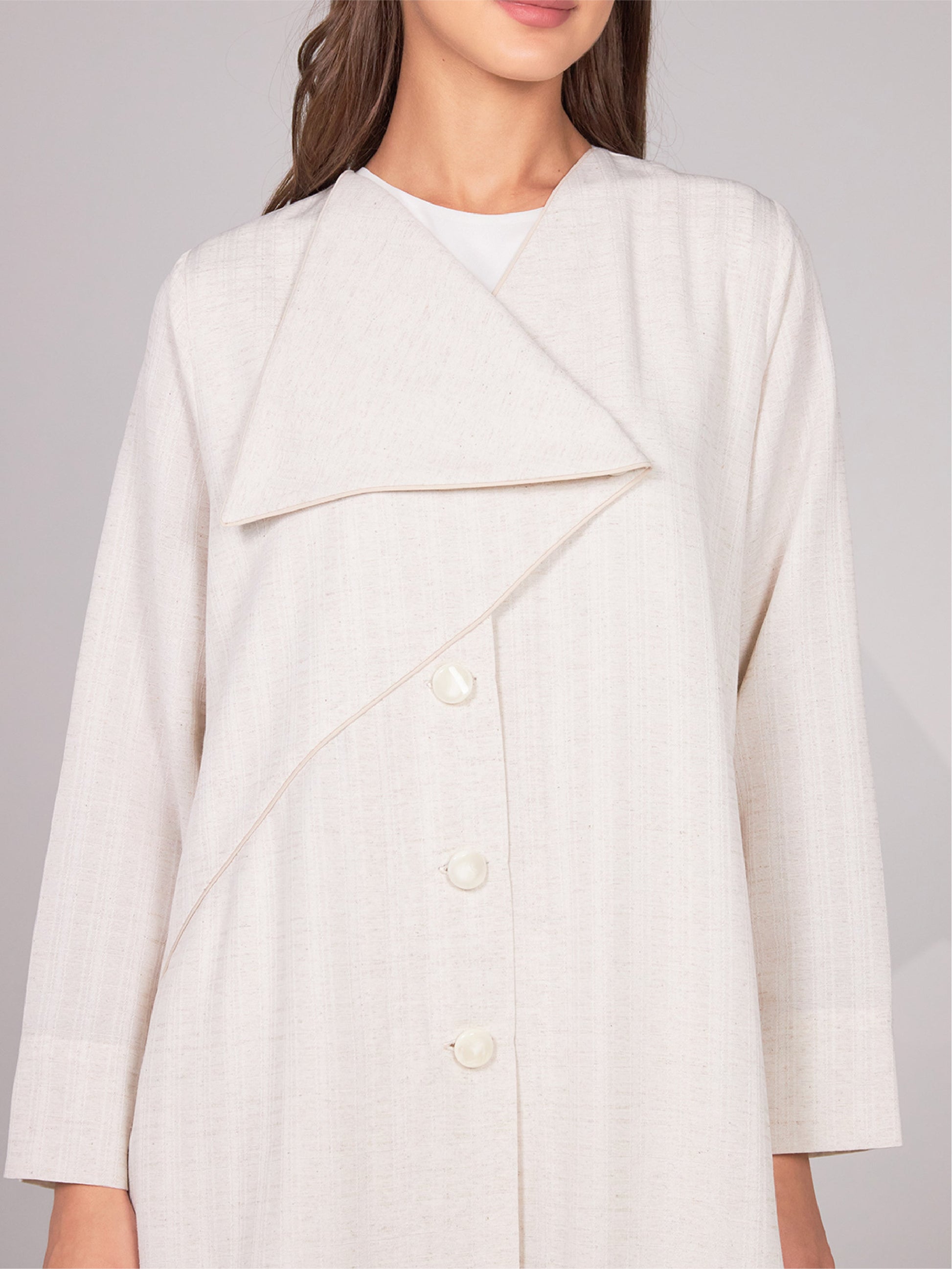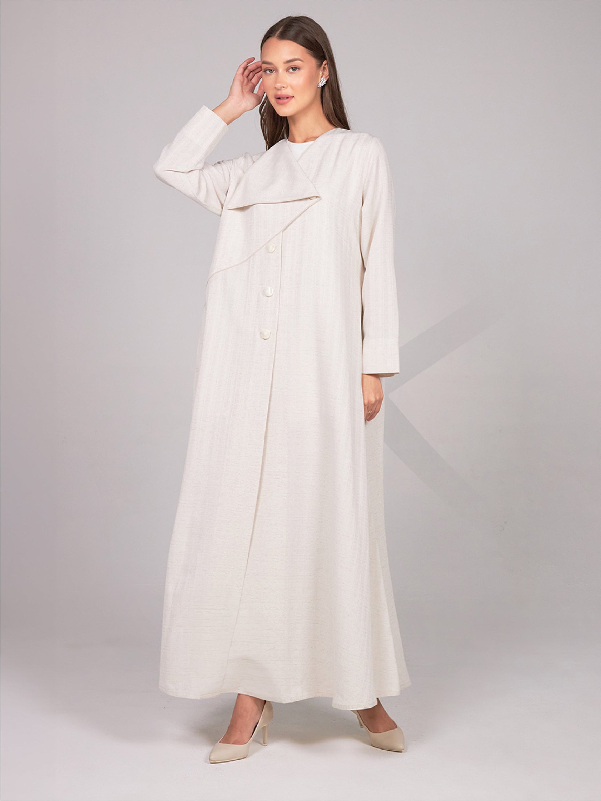 Emil is a mix lenin abaya with very unique design on the front and collar coming with biege piping.