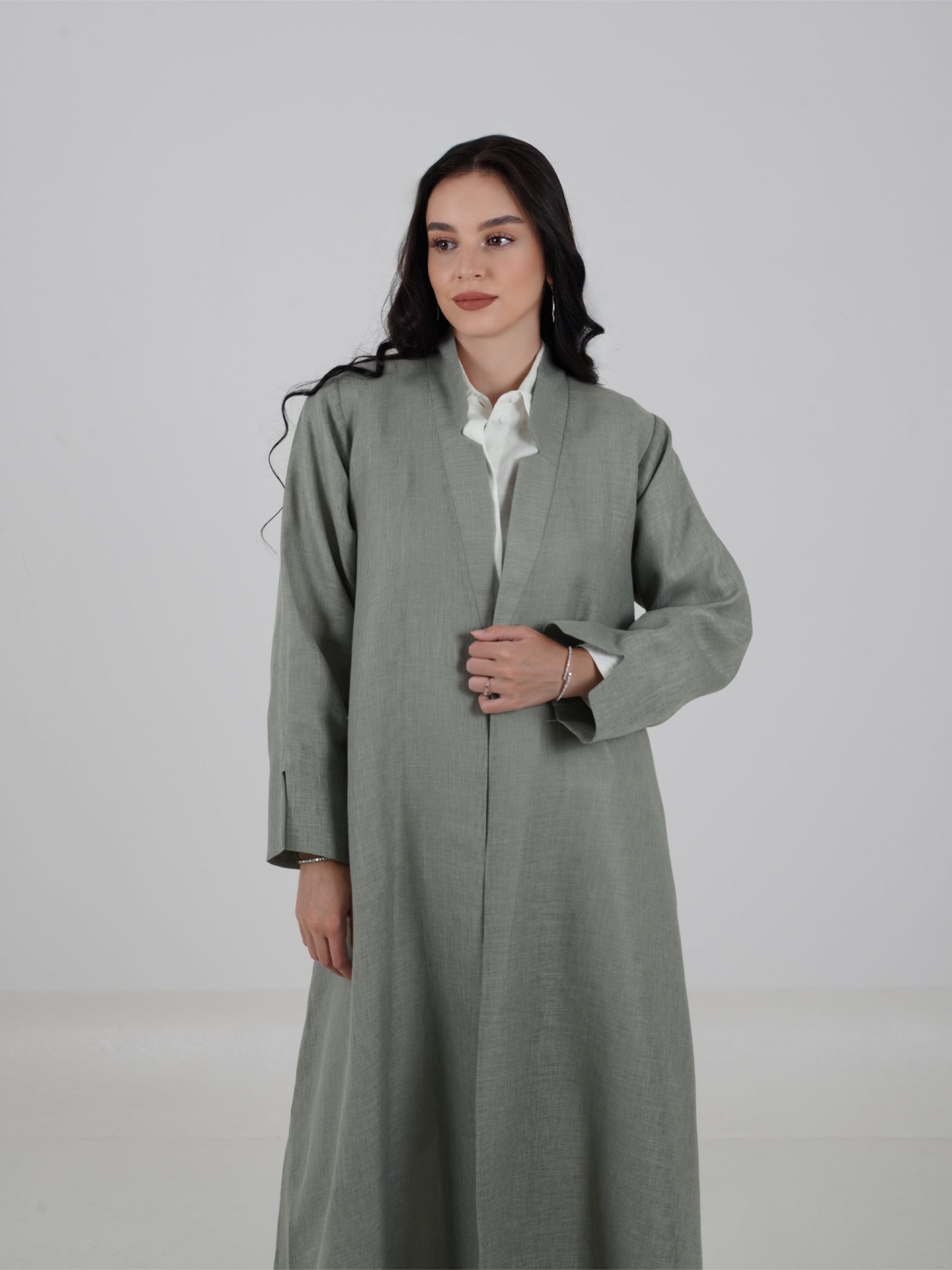 The Balsam Abaya is gracefully crafted from lightweight linen fabric in a soft pastel green shade. Delicately designed for airy comfort, it’s the perfect piece to keep you cool and elegant throughout the summer season.